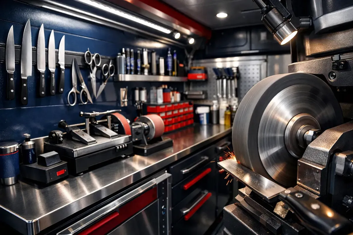 Mobile sharpening service for knives, hair shears, and grooming tools. We bring precision craftsmanship to your location.